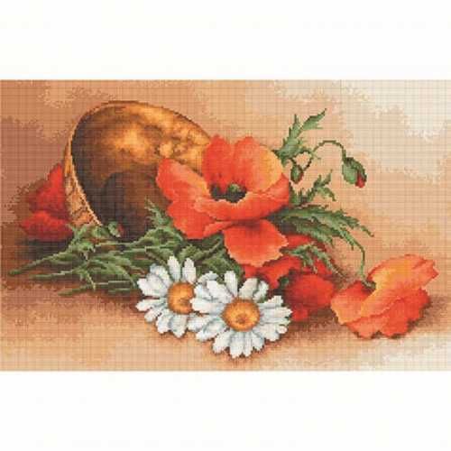 Набор для вышивки счетным крестом Полевые цветы (B500) компании Luca-S содержит изображение готовой работы, схему, мулине Anchor, канву Zweigart Aida 16, иглу и инструкцию на русском языке.