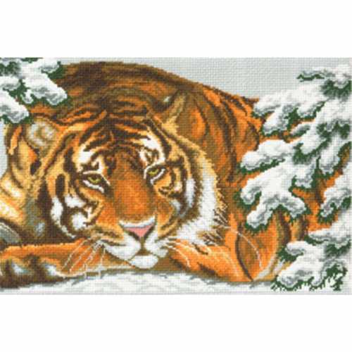 Набор для вышивания крестом Амурский тигр (0356N) ТМ Матренин посад содержит канву Aida 14 с нанесенным на нее цветным рисунком, мулине ПНК им.Кирова (16 цветов), иглу и инструкцию по вышивке.