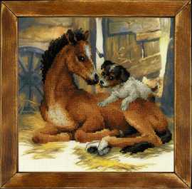 Набор для вышивки крестом Жеребенок и щенок, арт. РТ-0052, 30*30см, Риолис