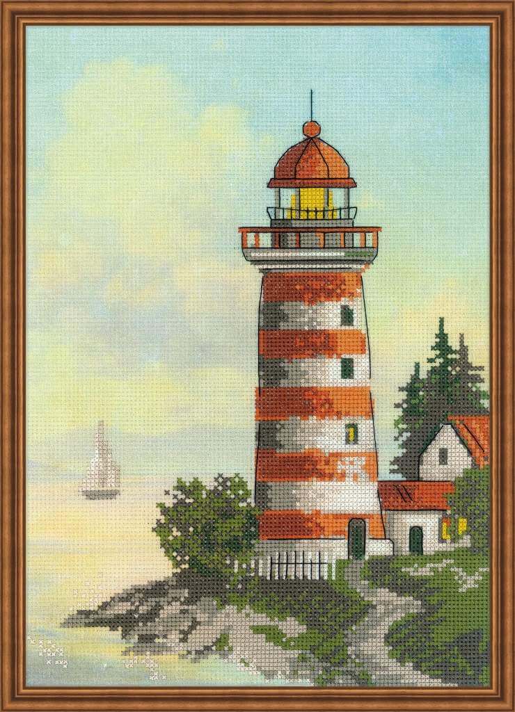 Набор для вышивания крестом Маяк (арт. РТ-0044) ТМ Риолис содержит нитки мулине Anchor, канву (14 Aida Zweigart с напечатанным фоном), иглу и подробную инструкцию. Внимание! Схема не нанесена на канву, она входит в набор отдельно на бумаге, а рисунок на ткани является фоновым изображением.