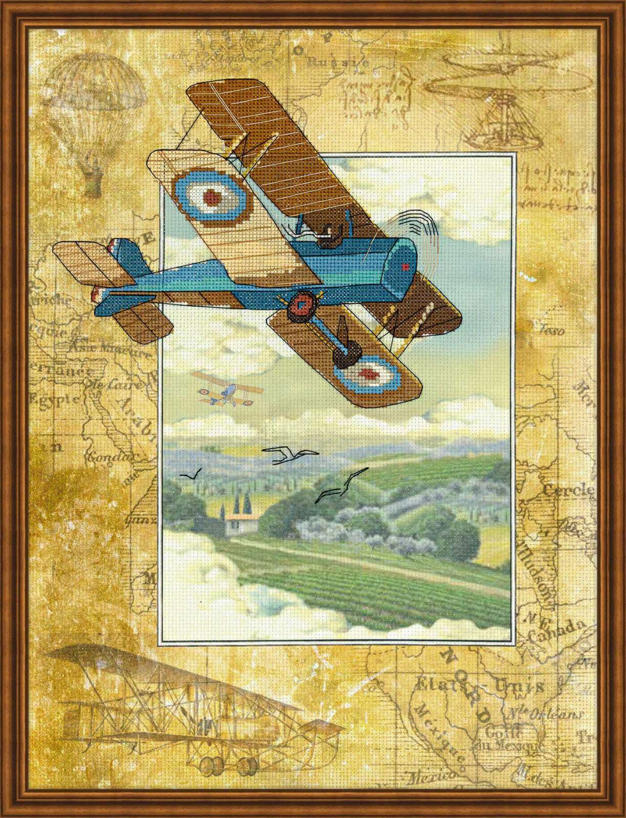 Набор для вышивания крестом Над облаками (арт. РТ-0036) ТМ Риолис содержит нитки мулине Anchor, канву (14 Aida Zweigart с напечатанным фоном), иглу и подробную инструкцию. Внимание! Схема не нанесена на канву, она входит в набор отдельно на бумаге, а рисунок на ткани является фоновым изображением.