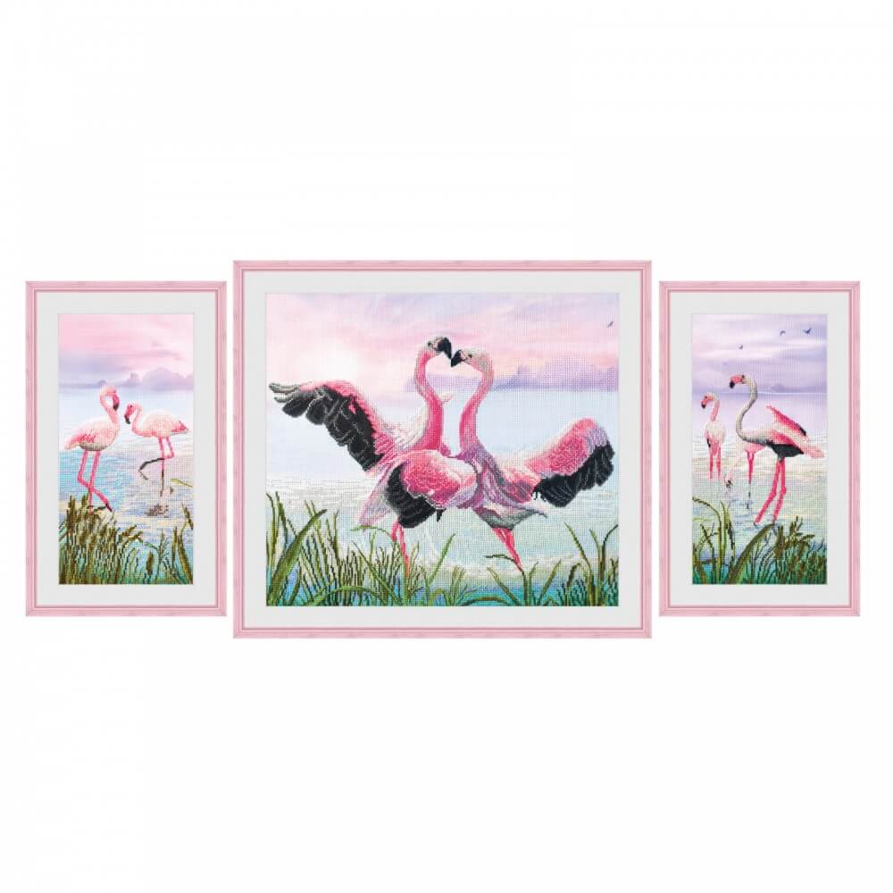 Набор для вышивки крестом на канве с фоновым рисунком Танец фламинго, 60х30см, СР6550-У, Новая Слобода