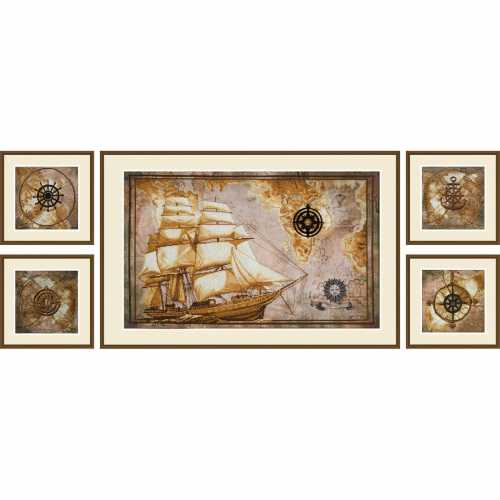 Набор для вышивки крестом на канве с фоновым рисунком Морское путешествие, 4 части 14x21см, 1 часть 55х34см, СВ6584, Новая Слобода