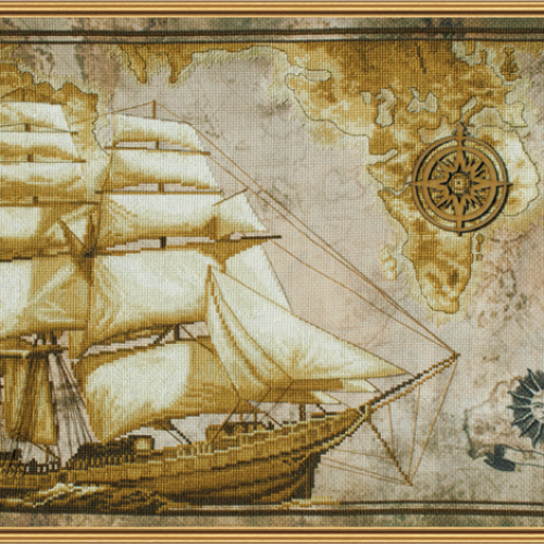 Набор для вышивки счетным крестом на канве с фоновым рисунком Морское путешествие компании Новая Слобода состоит из канвы Aida 14 с нанесенным рисунком, ниток мулине Palmira 180, иглы для вышивания, цветной схемы и подробной инструкции. Внимание! Схема не нанесена на канву, она входит в набор отдельно на бумаге, а рисунок на ткани является фоновым изображением.
