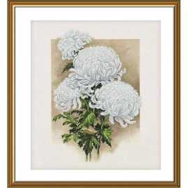 Набор для вышивки крестом на канве с фоновым рисунком Белая хризантема, 28х32см, СР2282, Новая Слобода