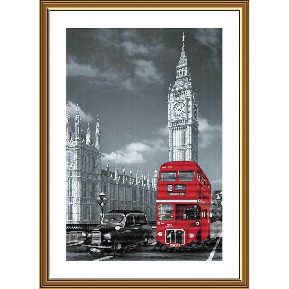 Набор для вышивки счетным крестом на канве с фоновым рисунком Лондон компании Новая Слобода состоит из канвы Aida 16 с нанесенным рисунком, ниток мулине Avrora 120, иглы для вышивания, цветной схемы и подробной инструкции. Внимание! Схема не нанесена на канву, она входит в набор отдельно на бумаге, а рисунок на ткани является фоновым изображением.