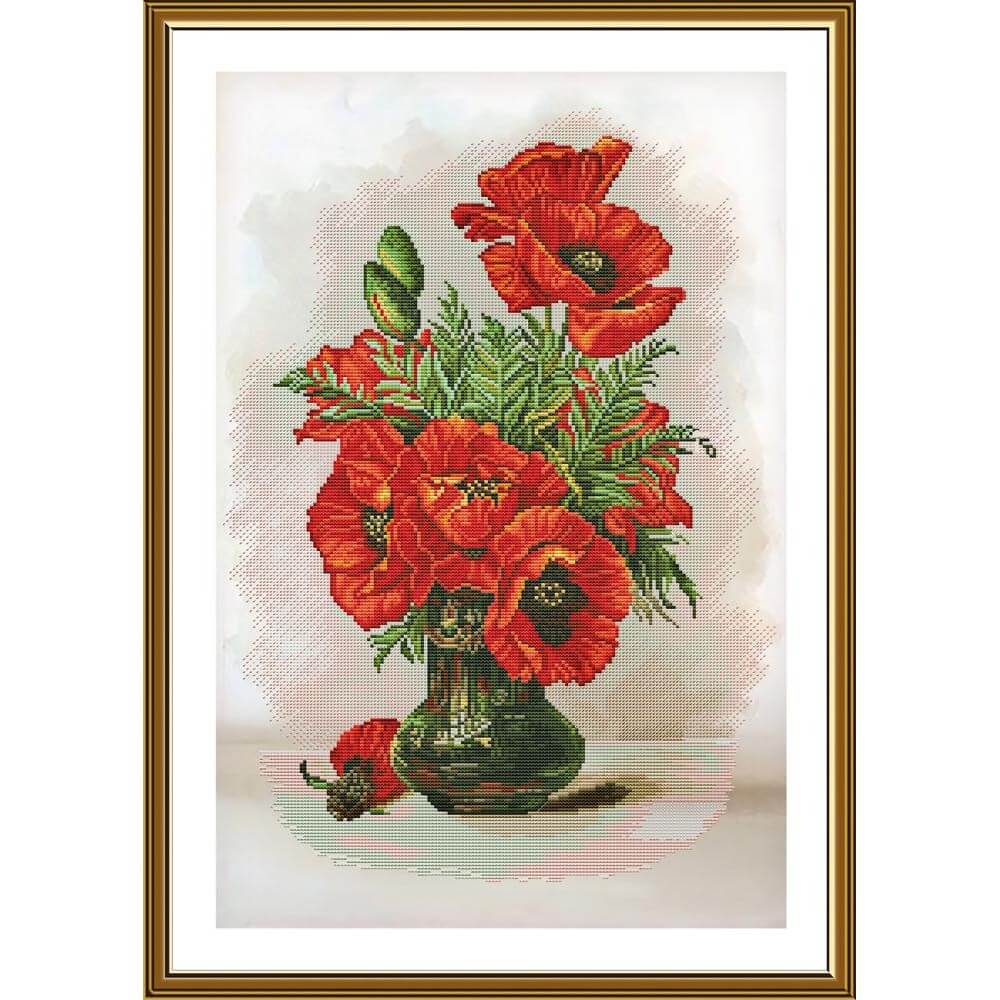 Набор для вышивки счетным крестом на канве с фоновым рисунком Маков цвет компании Новая Слобода состоит из канвы Aida 16 с нанесенным рисунком, ниток мулине Avrora 120, иглы для вышивания, цветной схемы и подробной инструкции. Внимание! Схема не нанесена на канву, она входит в набор отдельно на бумаге, а рисунок на ткани является фоновым изображением.