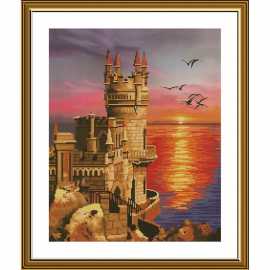 Набор для вышивки счетным крестом на канве с фоновым рисунком Ласточкино гнездо компании Новая Слобода состоит из канвы Aida 16 с нанесенным рисунком, ниток мулине Avrora 120, иглы для вышивания, цветной схемы и подробной инструкции. Внимание! Схема не нанесена на канву, она входит в набор отдельно на бумаге, а рисунок на ткани является фоновым изображением.