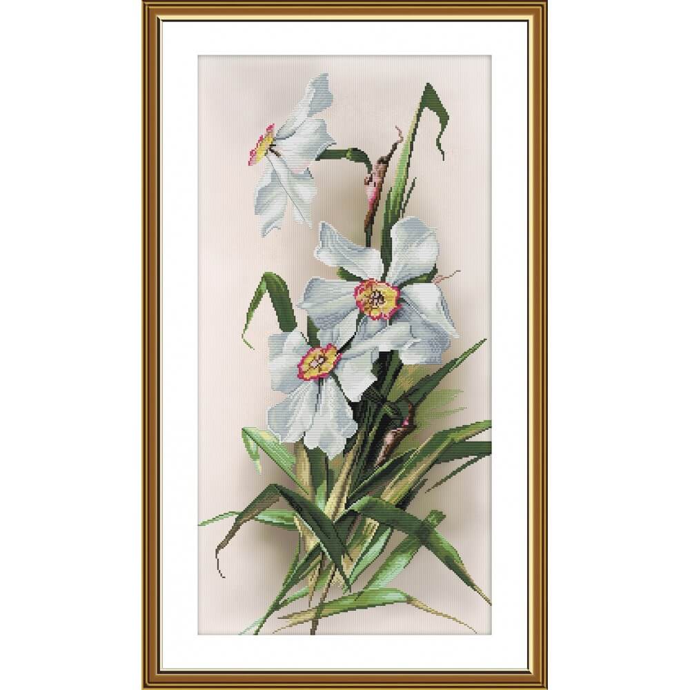 Набор для вышивки крестом на канве с фоновым рисунком Нарциссы, 28х56см, СР2289, Новая Слобода