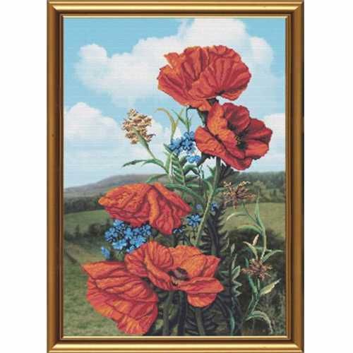 Набор для вышивки крестом на канве с фоновым рисунком Маки, 38x54см, СР1043, Новая Слобода