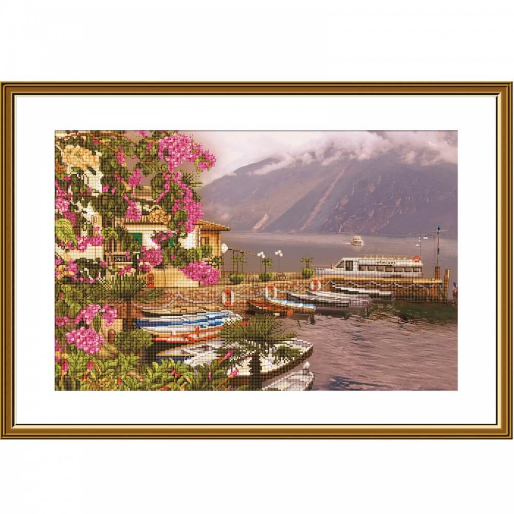 Набор для вышивки крестом на канве с фоновым рисунком Озеро Гарда, 44х28см, СР3260, Новая Слобода