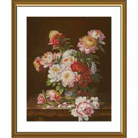 Набор для вышивки крестом на канве с фоновым рисунком Пионы, 30х37см, СР3296, Новая Слобода