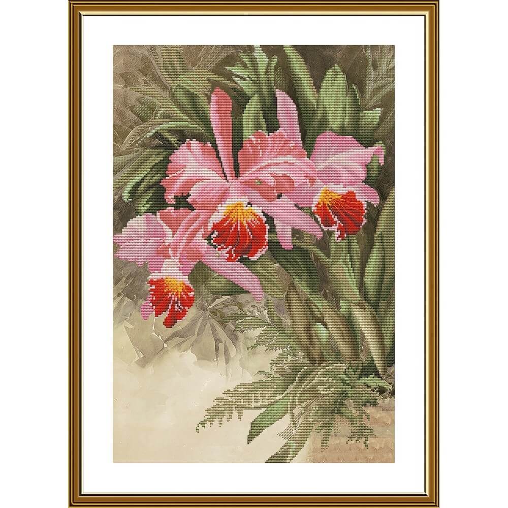 Набор для вышивки крестом на канве с фоновым рисунком Тропическая орхидея, 32x48см, СВ2239, Новая Слобода