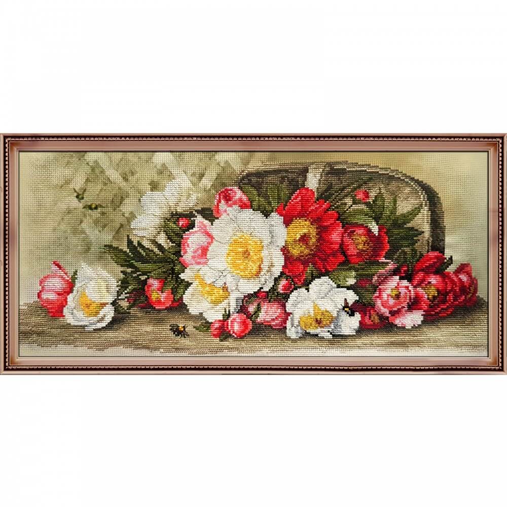 Набор для вышивки крестом на канве с фоновым рисунком Цветочная корзина, 43x19см, СВ3103, Новая Слобода