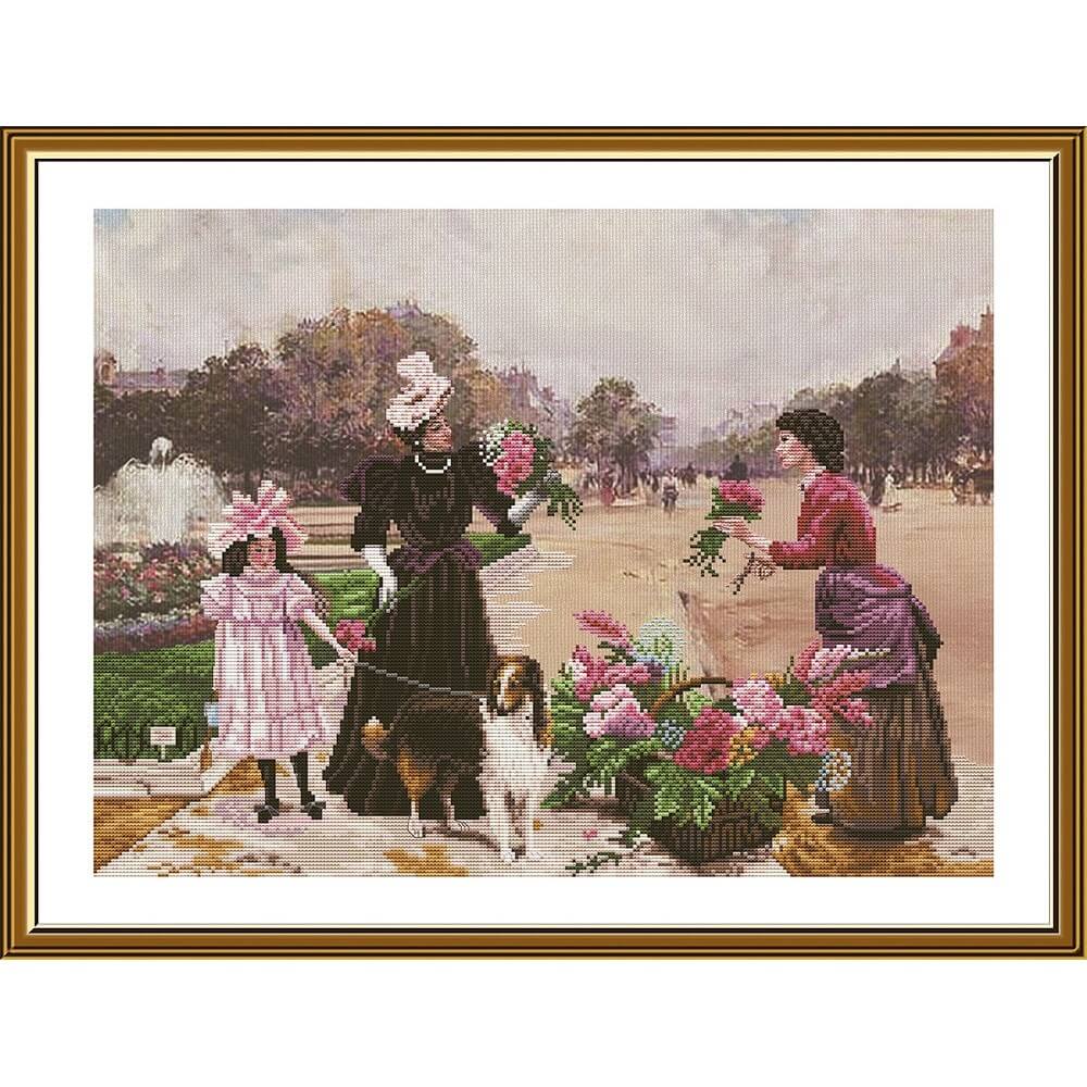 Набор для вышивки счетным крестом на канве с фоновым рисунком Семейная прогулка компании Новая Слобода состоит из ниток мулине Palmira 180, белой канвы Aida 14, иглы для вышивания, цветной схемы и подробной инструкции. Внимание! Схема не нанесена на канву, она входит в набор отдельно на бумаге, а рисунок на ткани является фоновым изображением.