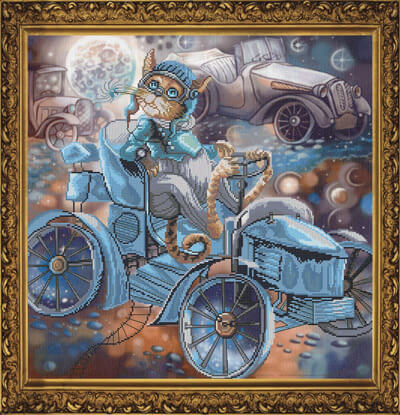 Набор для вышивки крестом на канве с фоновым рисунком Кот и Де Дион, 36x36см, СР1145, Новая Слобода