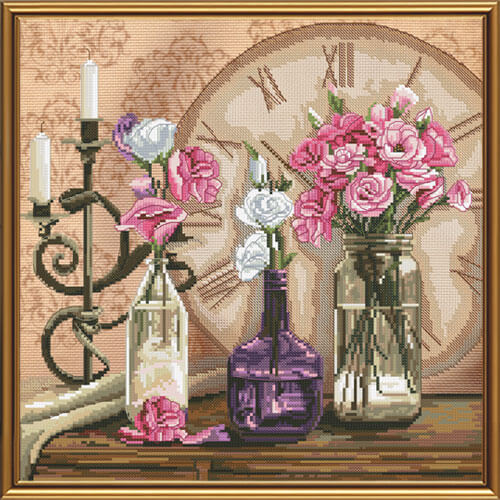Набор для вышивки счетным крестом на канве с фоновым рисунком Время цветов компании Новая Слобода состоит из канвы Aida 16 с нанесенным рисунком, ниток мулине Avrora 120, иглы для вышивания, цветной схемы и подробной инструкции. Внимание! Схема не нанесена на канву, она входит в набор отдельно на бумаге, а рисунок на ткани является фоновым изображением.