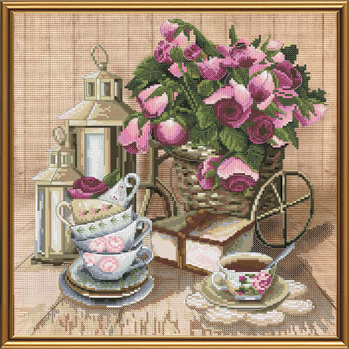 Набор для вышивки крестом на канве с фоновым рисунком Ароматный чай, 26x26см, СР3199, Новая Слобода