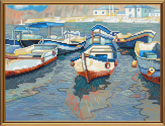 Набор для вышивки крестом на канве с фоновым рисунком Лодочная пристань, 28x21см, СВ4079, Новая Слобода