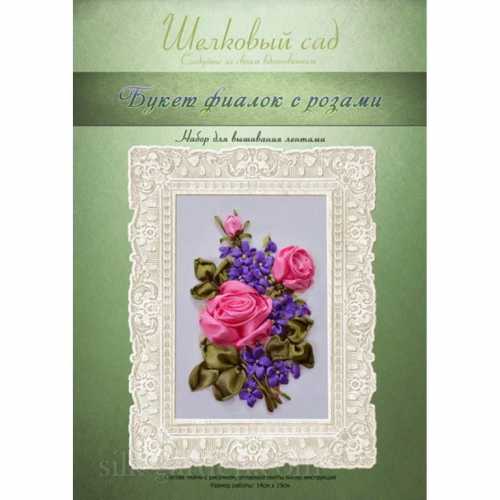 Набор для вышивки атласными лентами Букет фиалок с розами (ВЛ-Н-1095) ТМ Шелковый Сад содержит шелковые ленты, бисер, ткань с нанесенным рисунком-схемой, подробную инструкцию и фото работы. Так как производитель не комплектует наборы иглами, мы их Вам под