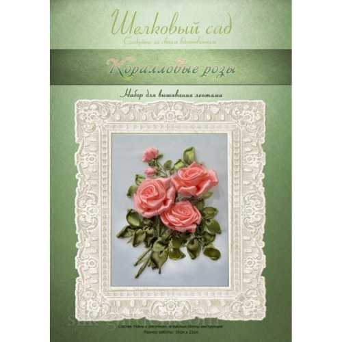 Набор для вышивания атласными лентами Коралловые розы, Шелковый сад, ВЛ-Н-1096, 16х21см