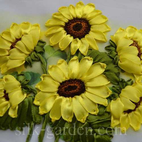 Набор для вышивки атласными лентами Яркие подсолнухи (ВЛ-Н-1052) ТМ Шелковый Сад содержит шелковые ленты, бисер, ткань с нанесенным рисунком-схемой, подробную инструкцию и фото работы. Так как производитель не комплектует наборы иглами, мы их Вам подарим