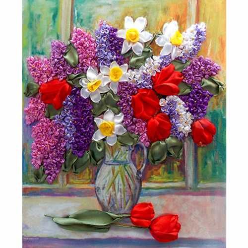 Набор для вышивания лентами Нарциссы и сирень, 26*30см, Маричка