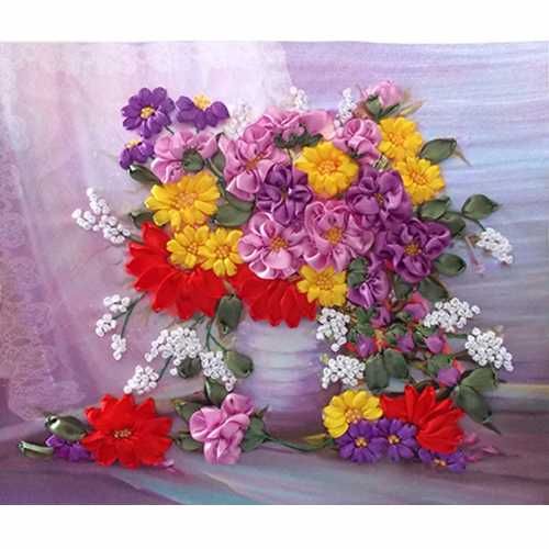 Набор для вышивания лентами Осенние цветы, 23*27см, Маричка