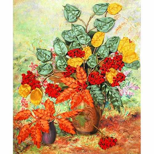 Набор для вышивания лентами Осенняя рябина, 27*32см, Маричка