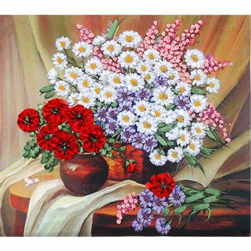 Набор для вышивания лентами Полевые цветы, 27*31см, Маричка