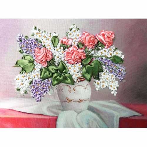 Набор для вышивания лентами Розы и сирень, 18*23см, Маричка