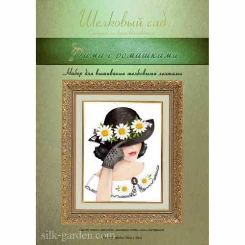 Набор для вышивки лентами из натурального шелка Дама с ромашками ТМ Шелковый сад (ВЛ-Н-1003) содержит шелковые ленты, ткань с нанесенным рисунком-схемой, подробную инструкцию и фото работы. Так как производитель не комплектует наборы иглами, мы их Вам под