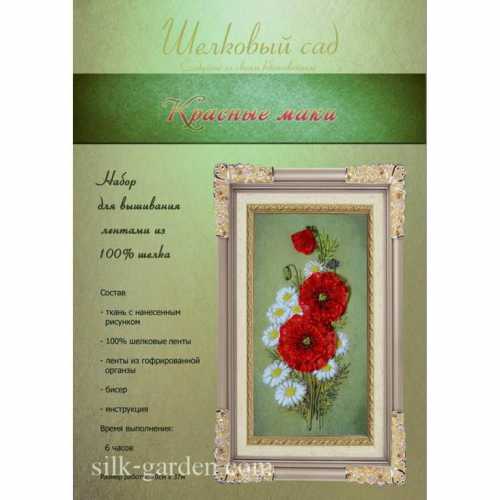 Набор для вышивки лентами из натурального шелка Красные маки А3 ТМ Шелковый сад (ВЛ-Н-1027) содержит шелковые ленты, ленты из гофрированой органзы, бисер, ткань с нанесенным рисунком-схемой, подробную инструкцию и фото работы. Так как производитель не ком
