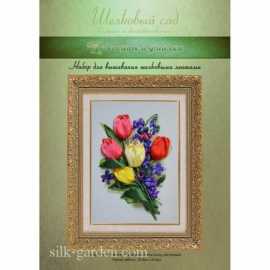 Набор для вышивания шелковыми лентами Тюльпаны и фиалки, Шелковый сад, ВЛ-Н-1035, 20х29см