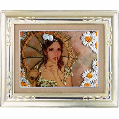Набор для вышивки лентами и бисером Девушка с зонтом, А3, ЛБ-3, Волшебная Шкатулка
