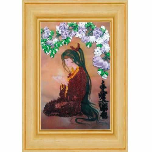 Набор для вышивки лентами и бисером Китайская девушка, А4, ЛБ-27, Волшебная Шкатулка
