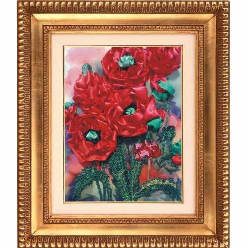 Набор для вышивки лентами и бисером Маки, А3, ЛБ-22, Волшебная Шкатулка