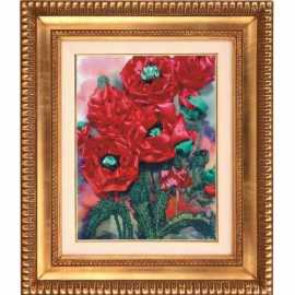 Набор для вышивания лентами и бисером Маки формата А-3 содержит ткань габардин с нанесенным рисунком-схемой, ленты, бисер, иглы (комплектация может меняться в зависимости от техники вышивки) и инструкцию.