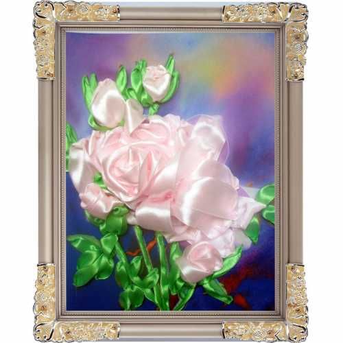 Набор для вышивки лентами и бисером Розы, А4, ЛБ-20, Волшебная Шкатулка