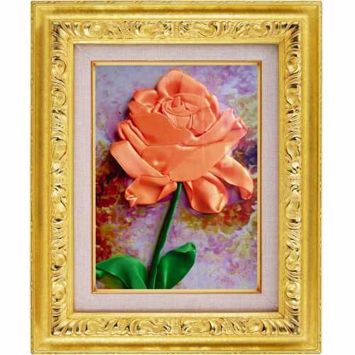 Набор для вышивания лентами Роза формата А-4 содержит ткань габардин с нанесенным рисунком-схемой, ленты, иглу (комплектация может меняться в зависимости от техники вышивки) и инструкцию.