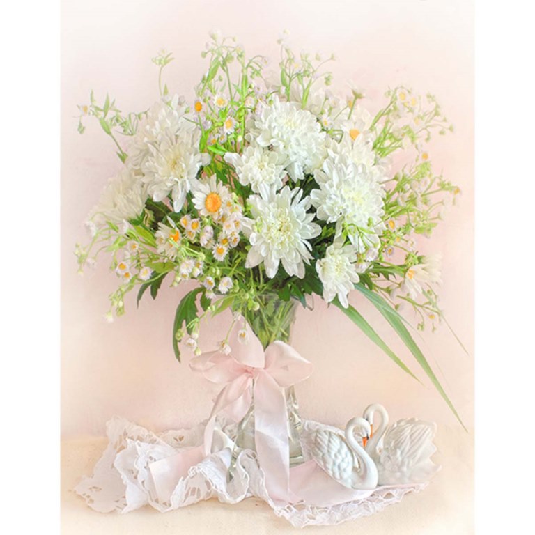 Набор для вышивки лентами Хризантемы белые, 33х43см, 7007, Матренин посад