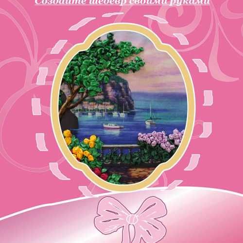 Набор для вышивания лентами Цветущая терраса формата А-4 содержит ткань габардин с нанесенным рисунком-схемой, ленты, иглу (комплектация может меняться в зависимости от техники вышивки) и инструкцию.
