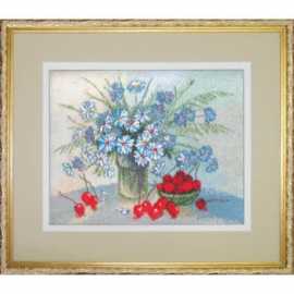 Набор для вышивания бисером и мулине Натюрморт с вишнями ТМ Чарівна мить содержит цветную схему-инструкцию, канву Aida 14, мулине Anchor, чешский бисер Preciosa и иглы для вышивки бисером и нитками мулине.