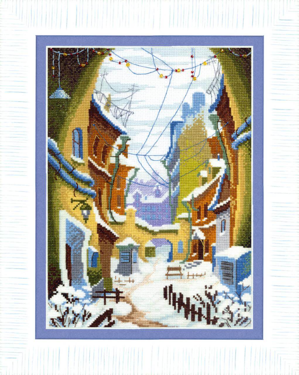 Набор для вышивания крестом и бисером Зимний дворик содержит подробную инструкцию, цветная схема, канву Aida 16, х/б мулине Bestex - 25 цветов, бисер Preciosa Ornela (Чехия) - 2 цвета и иглы.