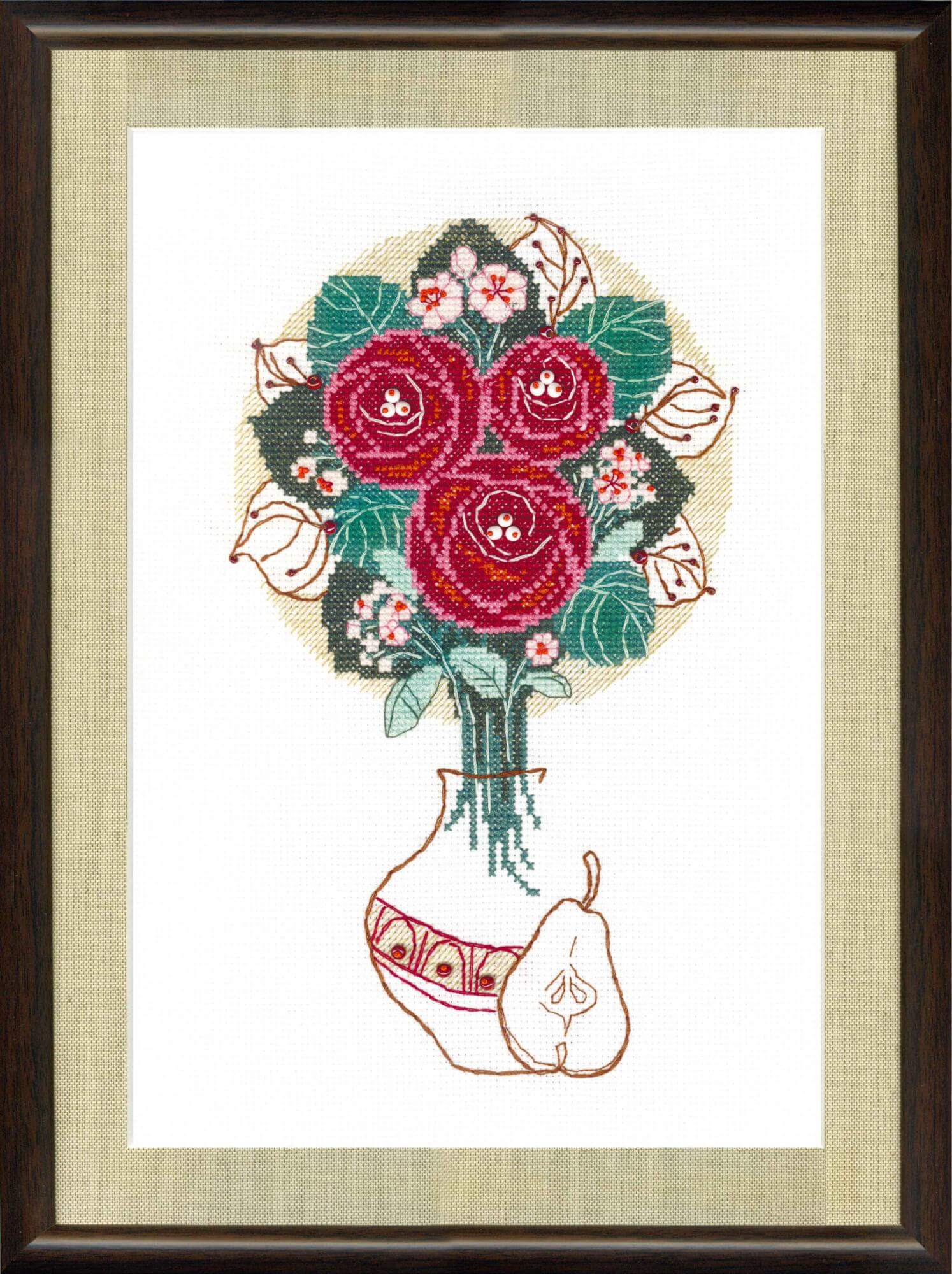 Набор для вышивания крестом и бисером Цветение груши содержит подробную инструкцию и цветную символьную схему, канву Aida 14, х/б мулине Bestex - 9 цветов, бисер Preciosa Ornela (Чехия) - 4 цвета и иглы.