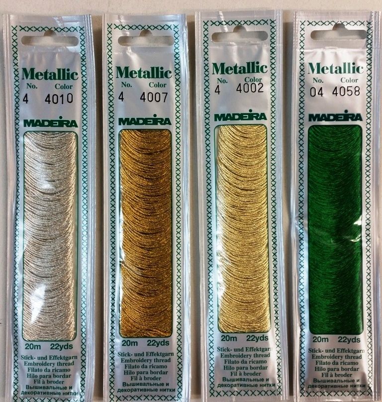 Madeira Metallic No. 4 Mouline - это 4-слойная металлизированная нить, состоящая из металлизированного полиэстера (40%) и вискозы (60%), длиной 20 метров. Металлизированные вышивальные нитки арт. 4 добавят в вашу вышивку праздничный блеск.