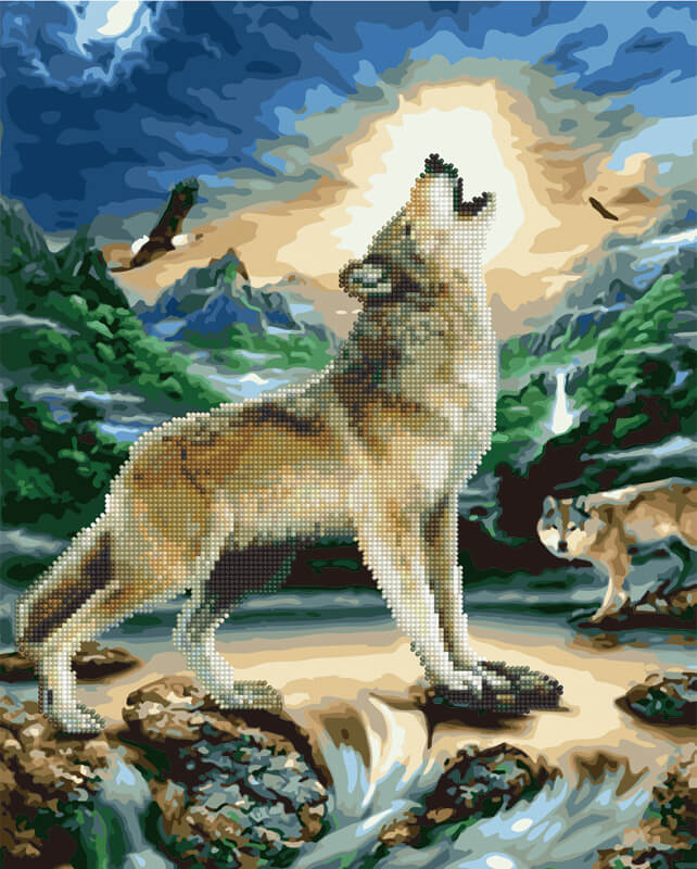 Набор для рисования картины по номерам с алмазной мозаикой Волк при луне, арт. GZS1095, 40х50см. ***НАЛИЧИЕ УТОЧНЯЙТЕ***