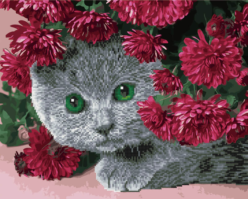 Набор для рисования картины по номерам с алмазной мозаикой Кот в цветах, арт. GZS1093, 40х50см. ***НАЛИЧИЕ УТОЧНЯЙТЕ***