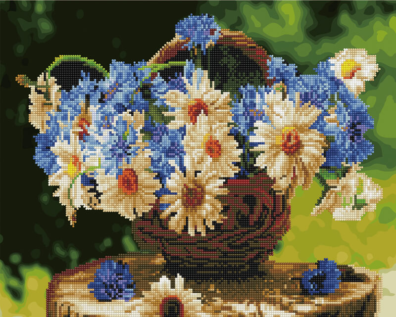 Набор для рисования картины по номерам с алмазной мозаикой Ромашки и васильки, арт. GZS1086, 40х50см. ***НАЛИЧИЕ УТОЧНЯЙТЕ***
