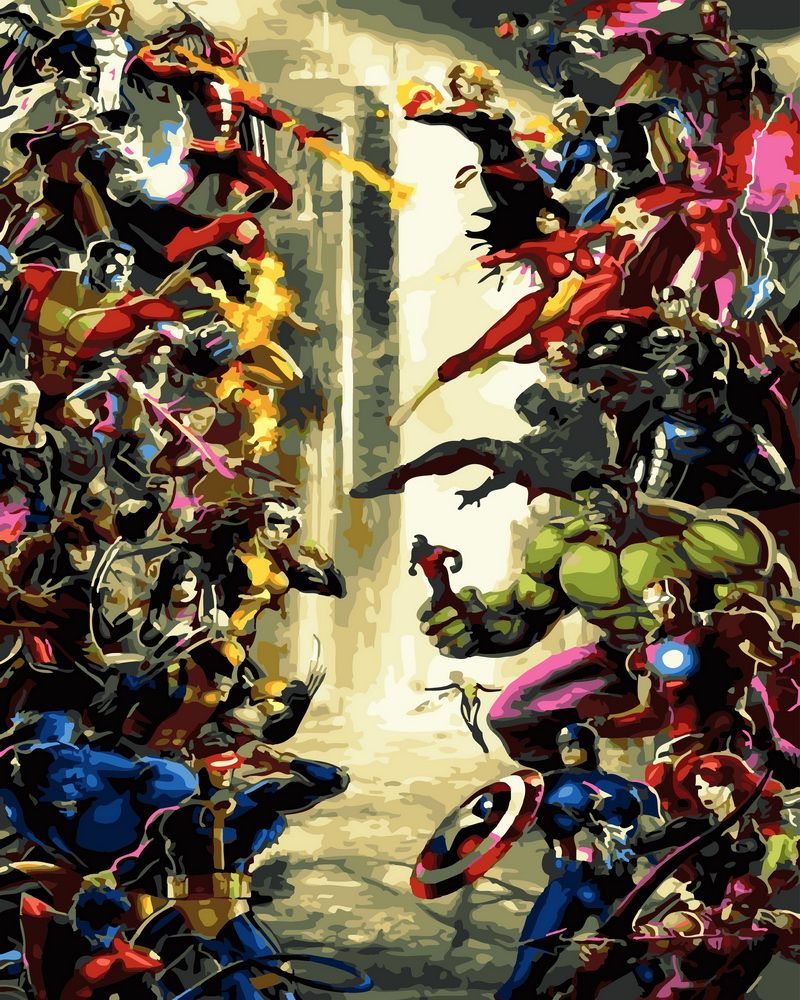 Набор для рисования картины по номерам Битва Марвел, арт. BK-GX32012, 40х50см. ***НАЛИЧИЕ УТОЧНЯЙТЕ***